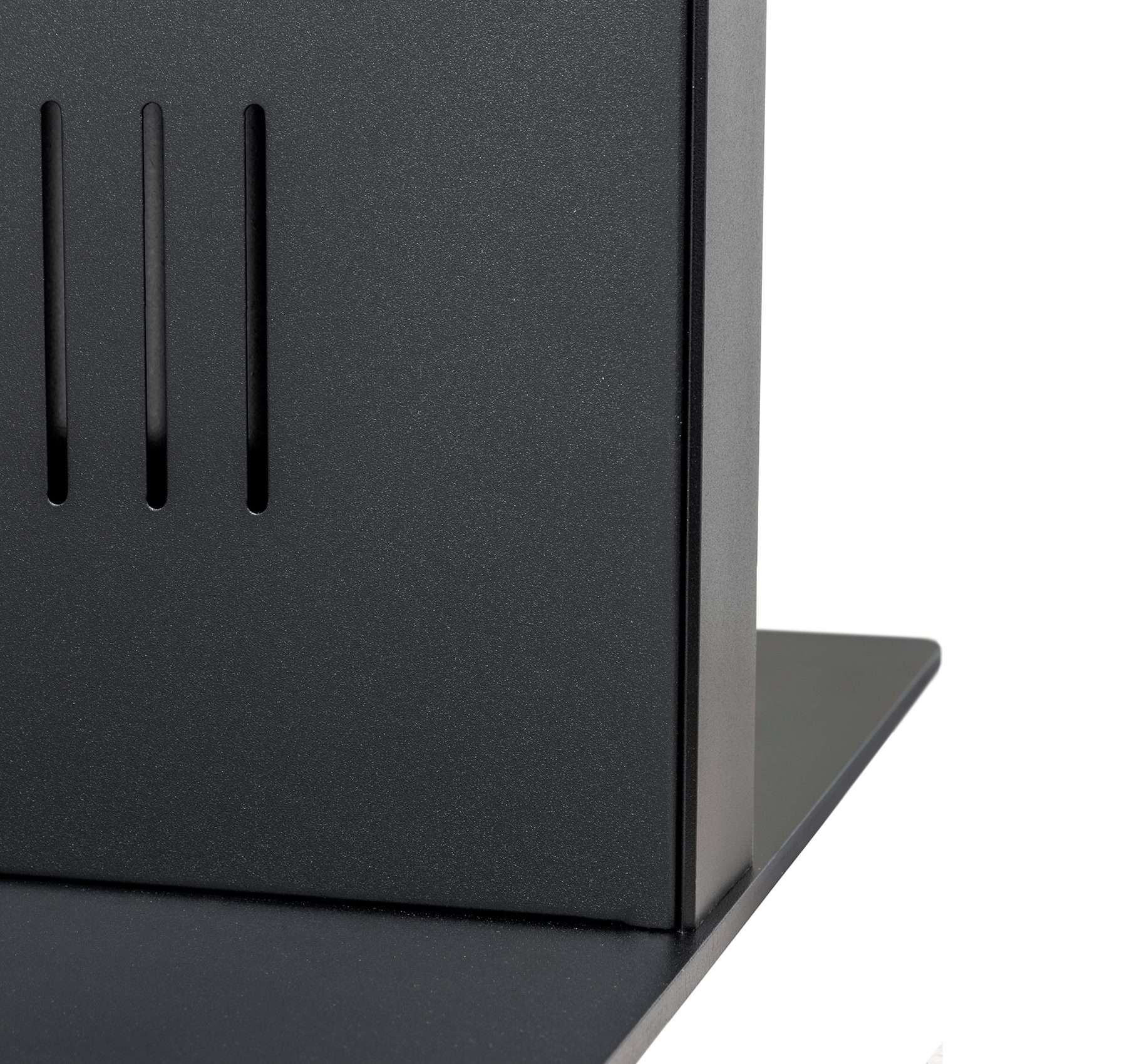 Die hochwertige Konstruktion mit Aluminiumprofilen, Sicherheitstglas und einem massiven Stahlplattenfuß gewährleistet Stabilität und Langlebigkeit. Die Standardfarben sind elegant Schwarz oder Silber, individuelle RAL-Farben sind möglich. Die Serie ist gezielt für Indoor-Einsatz konzipiert – etwa in Shops, Hotels, Showrooms oder auf Messeständen.