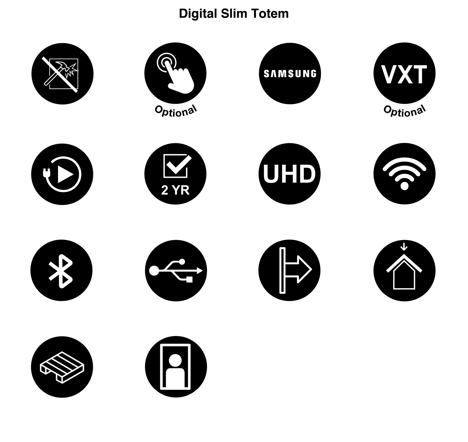 Mit dem Digital Slim Totem erhalten Sie eine wirkungsvolle Präsentationslösung, die Technik, Design und Bedienfreundlichkeit in einem Produkt vereint. Ob für Markenkommunikation, Point-of-Sale-Aktionen oder Event-Präsentation – Dieses Totem liefert anspruchsvolle Wirkung im Innenraum.