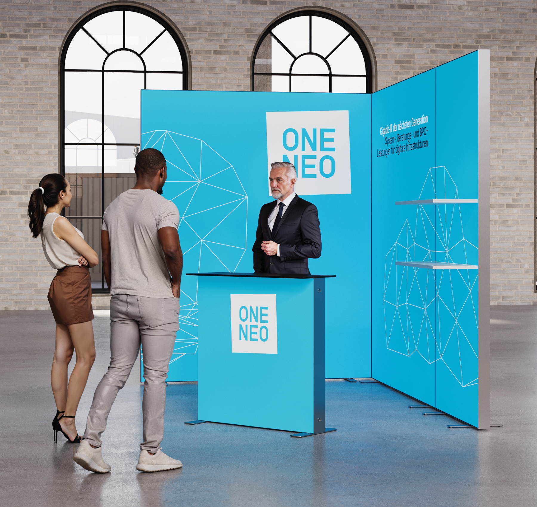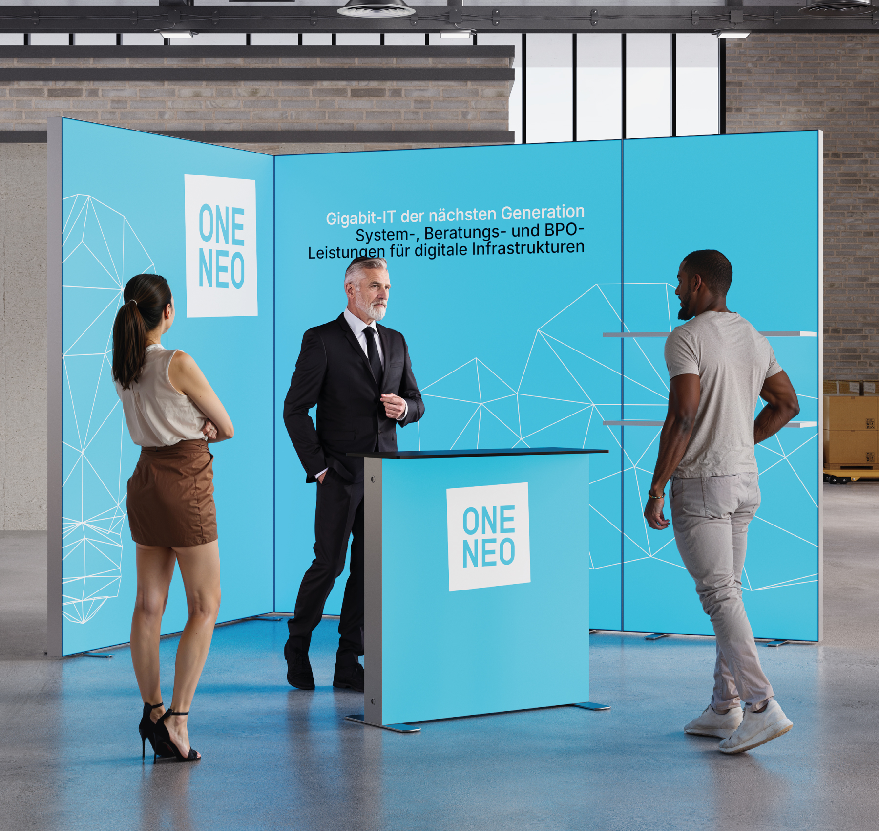 Besonders flexibel ist die wählbare Standhöhe, die in 200 cm, 225 cm oder 250 cm verfügbar ist. Diese Höhenanpassung erlaubt es, den Stand an unterschiedliche Messehallen und räumliche Gegebenheiten optimal anzupassen. Die hochwertige Verarbeitung und das stabile System garantieren eine langlebige und zuverlässige Nutzung über viele Messeauftritte hinweg.