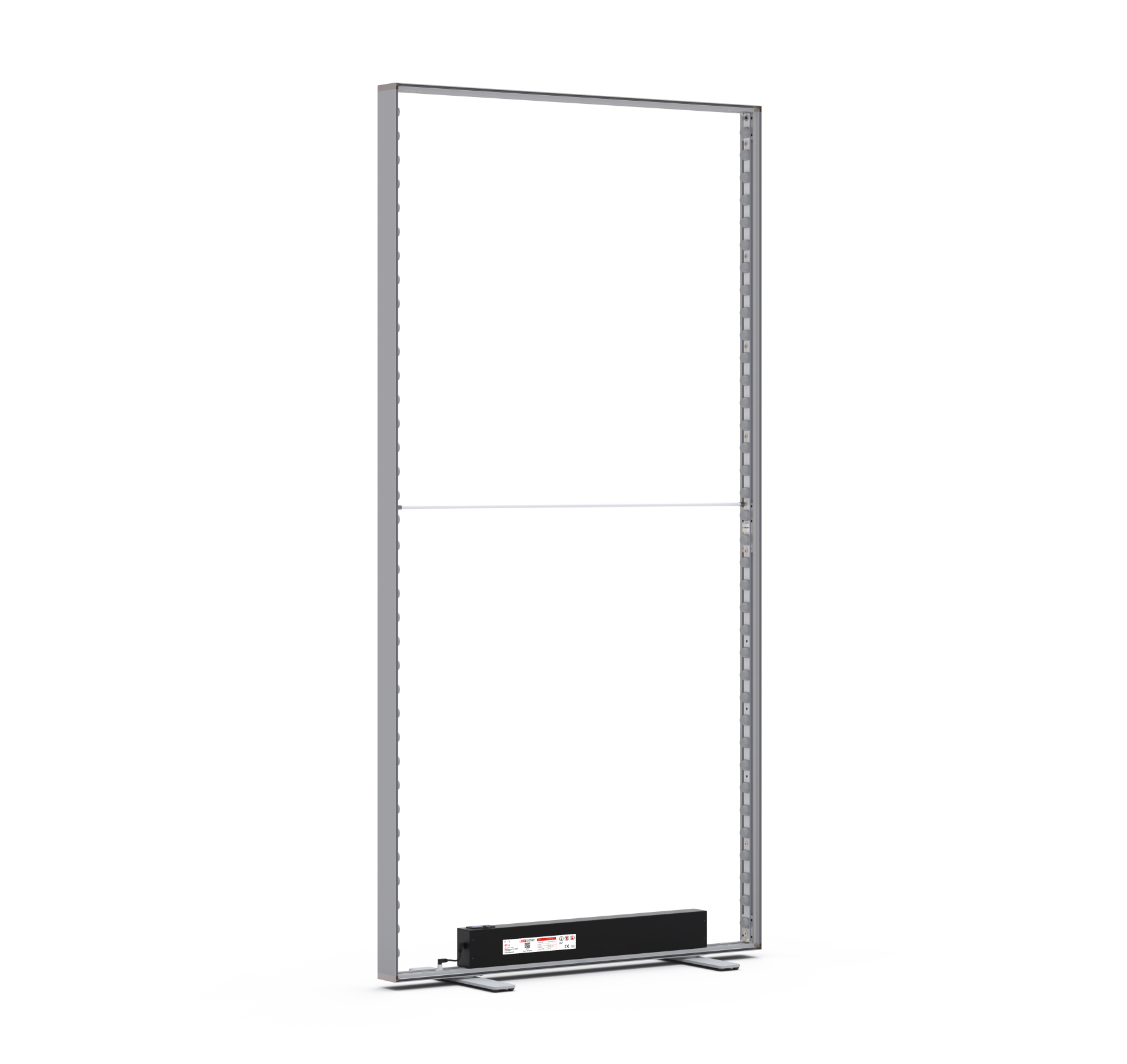 Nutzen Sie das LED-UP Leuchtdisplay als Rückwand. Mehrere Systeme können einfach und nahezu unsichtbar mittels Steckklemmen in gerader, L- oder U-Form verbunden aufgestellt werden. Durch dieses äußerst innovatives Stecksystem ist der Aufbau in kürzester Zeit vollzogen und erlaubt das nahtlose Aneinanderreihen mehrerer Elemente für großflächige Raumeffekte. Das System LEDUP besteht aus Einzelmodulen (freistehend) in zwei Breiten 85 und 100 cm und zwei Höhen 200/202 (inkl. Fuß) und 245/247 cm (inkl. Fuß). Sie können diese Formate wahlweise nach Bedarf anordnen und darüber hinaus problemlos LED-UP Leuchtdisplay mit der nicht hinterleuchteten Variante PICUP kombinieren, um so noch spannendere Präsentationen zu verwirklichen und Ihre Ausstellfläche optimal zu nutzen. Hohe Leuchtkraft und gleichmäßige Ausleuchtung machen das Leuchtdisplay LEDUP zum Champion unter den Leuchtdisplays. Setzen Sie einzelne Akzente oder kombinieren Sie mehrere Elemente zu großflächigen Lichtwänden. Schaffen Sie auch in großen Räumen raffinierte Stimmungen. Mit nur ein paar Handgriffen sichern Sie sich einen eindrucksvollen Auftritt. Kompakt verpackt in einer ausgeklügelten Kartonbox lassen sich sowohl System als auch Digitaldrucke optimal verstauen und einfach transportieren. Die LED Messewände bestehen aus nur sieben Teilen und lassen sich ohne Werkzeug in kürzester Zeit zusammenbauen. Somit ermöglichen sie einen schnellen und unkomplizierten Einsatz. Sie entnehmen die Teile der praktischen Transportbox, stecken diese zusammen und klappen die bereits vormontierte Fußkonstruktion aus – fertig. Dank anwenderfreundlicher Gummilippentechnik sind auch die Sujets im Handumdrehen faltenfrei eingespannt und lassen sich ebenso einfach austauschen.