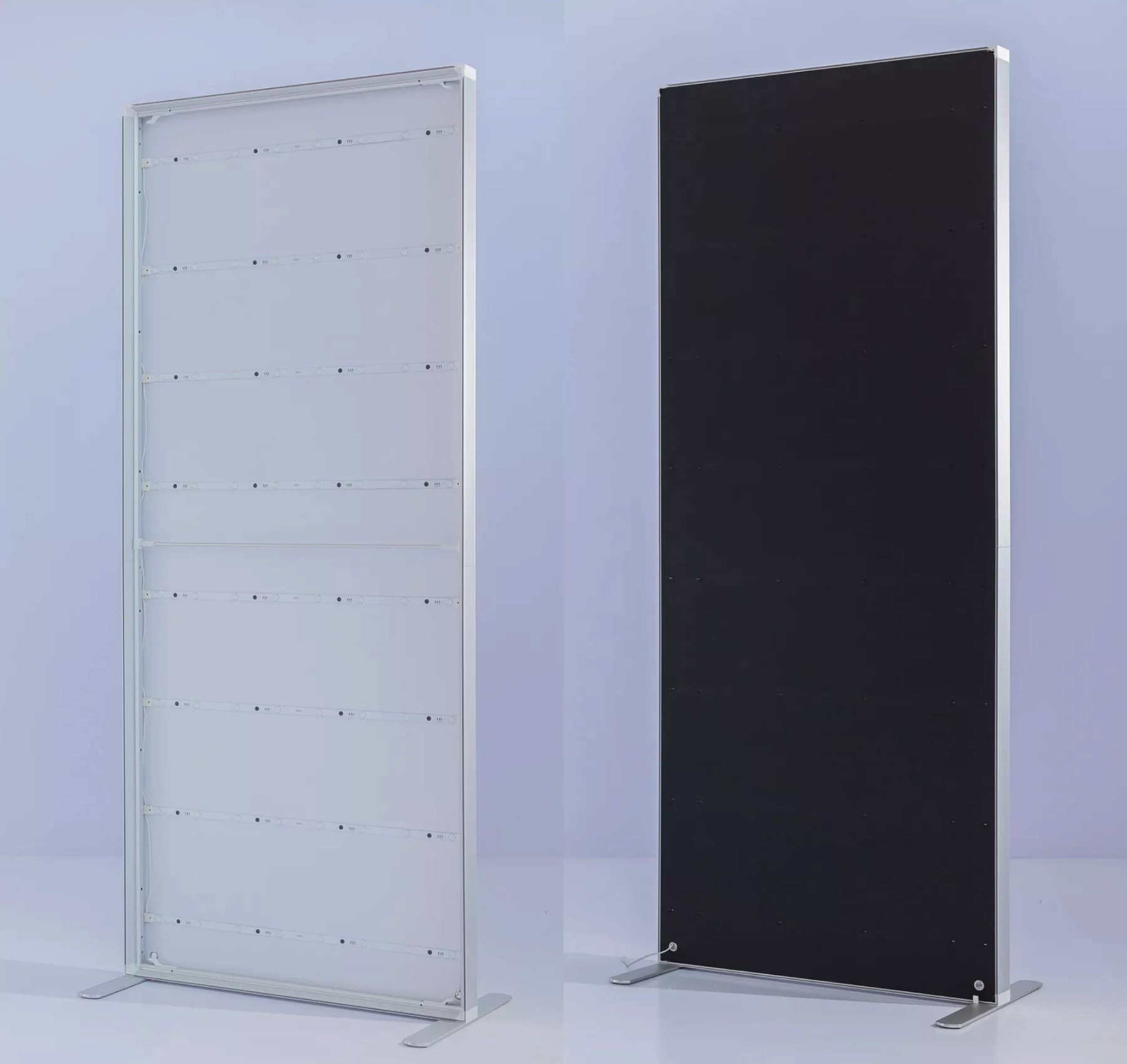 Das LED-Rollup Display SEGO bietet eine erschwingliche und effektive Möglichkeit, Ihre einseitigen Werbebotschaften perfekt zu beleuchten. Dieses schlanke Leuchtdisplay, erhältlich in den Größen 85x200 cm und 100x200 cm, verfügt über ein 65 mm schmales Profil und leistungsstarke LED-Leuchten, die auf der Rückseite eines Block-out-Films angebracht sind. Ideal für den Einsatz auf Messen, Veranstaltungen oder in öffentlichen Räumen – Ihre Botschaften werden garantiert ins rechte Licht gerückt. Heben Sie sich mit dem LED-Rollup Display SEGO von herkömmlichen Bannern ab. Dank seiner brillanten Beleuchtung zieht es deutlich mehr Aufmerksamkeit auf sich als Standard-Banner. Perfekt für Werbung, die rund um die Uhr sichtbar sein soll, und eine preiswerte Lösung für Leuchtreklame mit einem unschlagbaren Preis-Leistungs-Verhältnis. Mit dem LED-Rollup Display SEGO wird die Installation zum Kinderspiel. Das werkzeuglose System ermöglicht eine schnelle und einfache Montage: einfach einklicken, anschließen und schon ist Ihr Leuchtdisplay einsatzbereit. Ein Verbindungskabel auf der Rückseite des Block-out-Films verbindet die leistungsstarken LED-Leuchten mit dem Transformator. Nach jedem Einsatz kann das Display bequem in einer weichen Tragetasche verstaut werden – bereit für die nächste Veranstaltung. Ob für Ausstellungen, Sonderveranstaltungen oder Produktwerbung: Mit dem durchdachten Grafiksystem des LED-Rollup Display SEGO lassen sich Motive schnell und einfach austauschen. Bestellen Sie für Ihre nächste Promotion einfach eine neue Grafik und ersetzen Sie den Gewebedruck mit Silikonkanten im Handumdrehen. So sind Sie jederzeit bereit für den nächsten großen Auftritt.