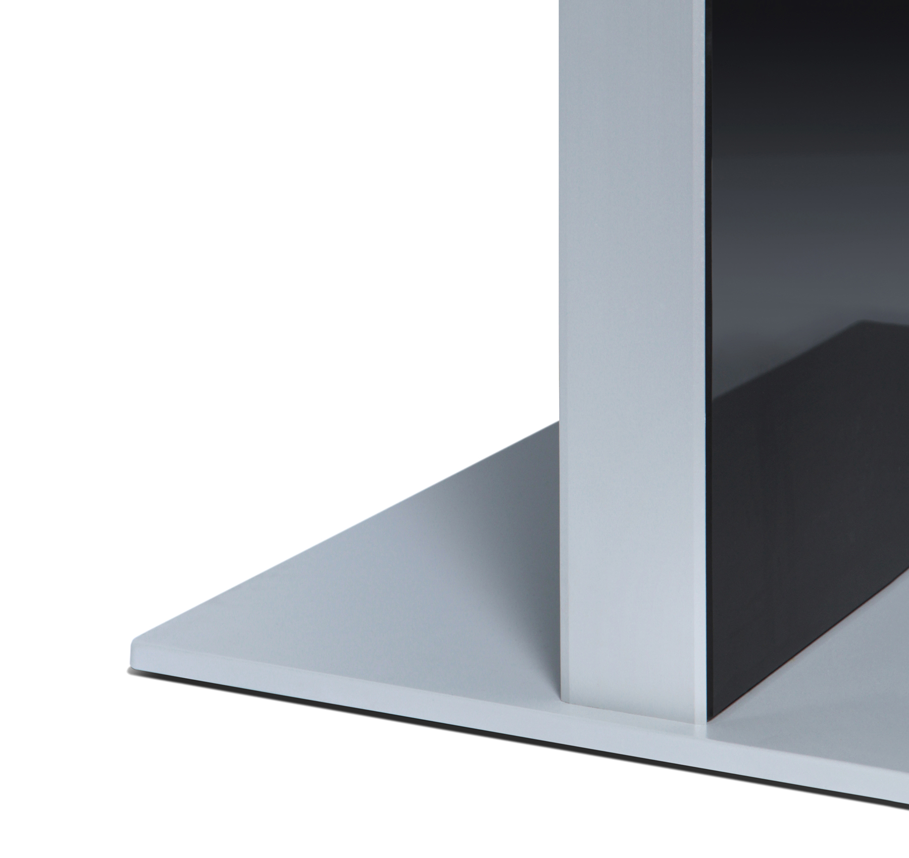Die hochwertige Konstruktion mit Aluminiumprofilen, Sicherheitstglas und einem massiven Stahlplattenfuß gewährleistet Stabilität und Langlebigkeit. Die Standardfarben sind elegant Schwarz oder Silber, individuelle RAL-Farben sind möglich. Die Serie ist gezielt für Indoor-Einsatz konzipiert – etwa in Shops, Hotels, Showrooms oder auf Messeständen.